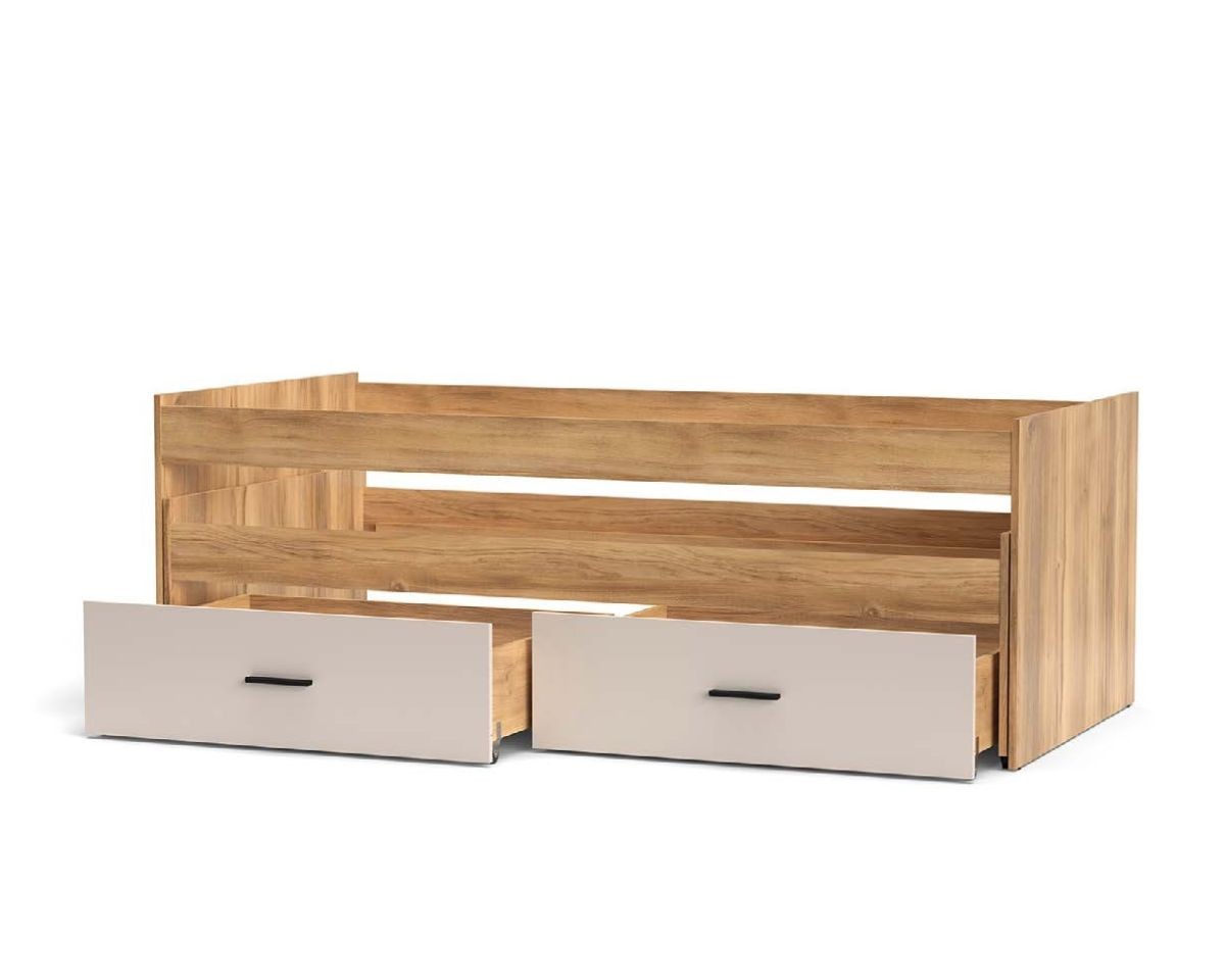 La cama compacto Elba combina diseño moderno, funcionalidad y una estética minimalista que encaja perfectamente en dormitorios juveniles o habitaciones de invitados. Su estructura resistente ofrece una cama principal cómoda y una cama auxiliar extraíble ideal para visitas, hermanos o para aprovechar mejor el espacio disponible. Además de disponer de espacio extra para almacenaje con sus dos cajones.