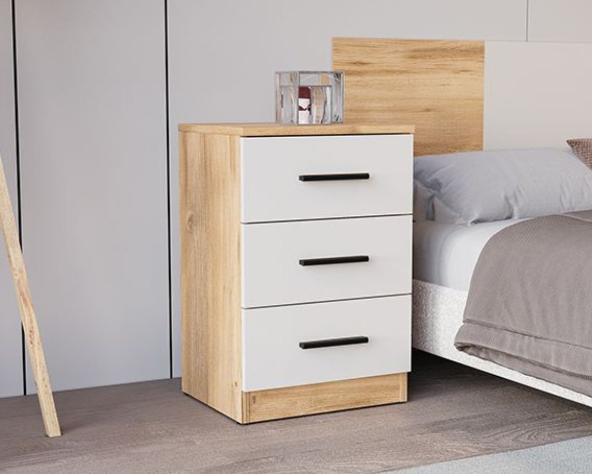 La mesita de noche Elba de 3 cajones combina diseño moderno, líneas rectas y una estética minimalista que encaja perfectamente en dormitorios contemporáneos. Sus tres cajones amplios ofrecen una excelente capacidad de almacenamiento para mantener el espacio ordenado, mientras que su acabado resistente garantiza durabilidad y fácil mantenimiento.
