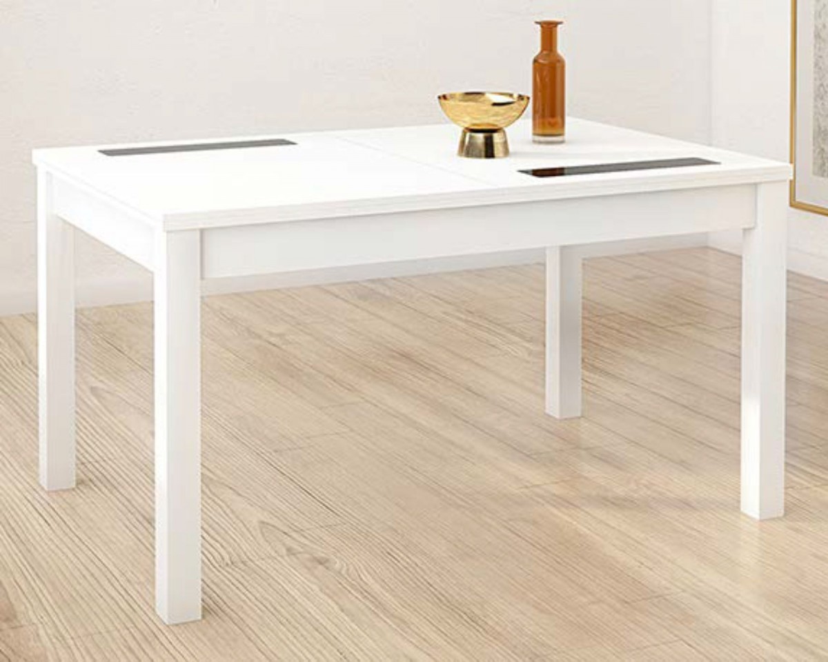 La mesa de comedor extensible Lara con cristales es una mesa bonita y a la vez funcional, tiene una medida ideal que se adapta a la mayoría de los comedores.