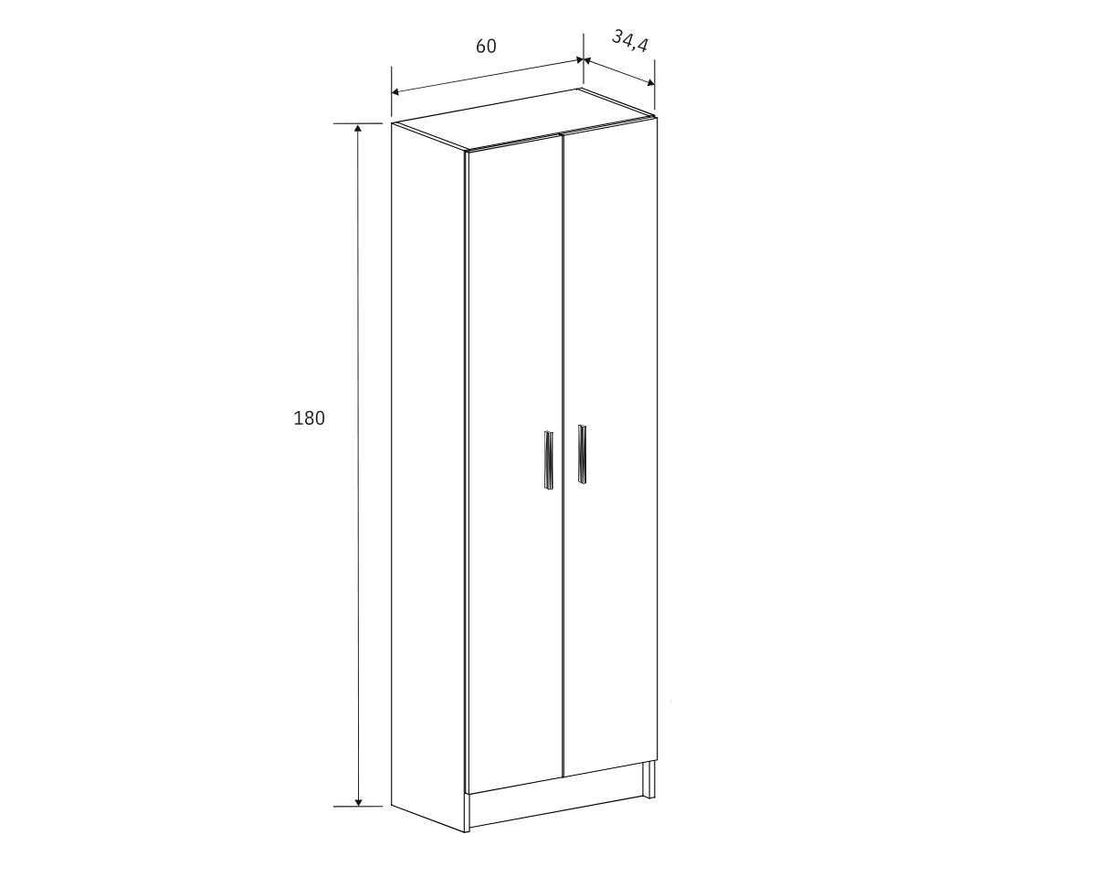 - Auxiliar: alto 180 cm, ancho 60 cm, fondo 34,4 cm.
