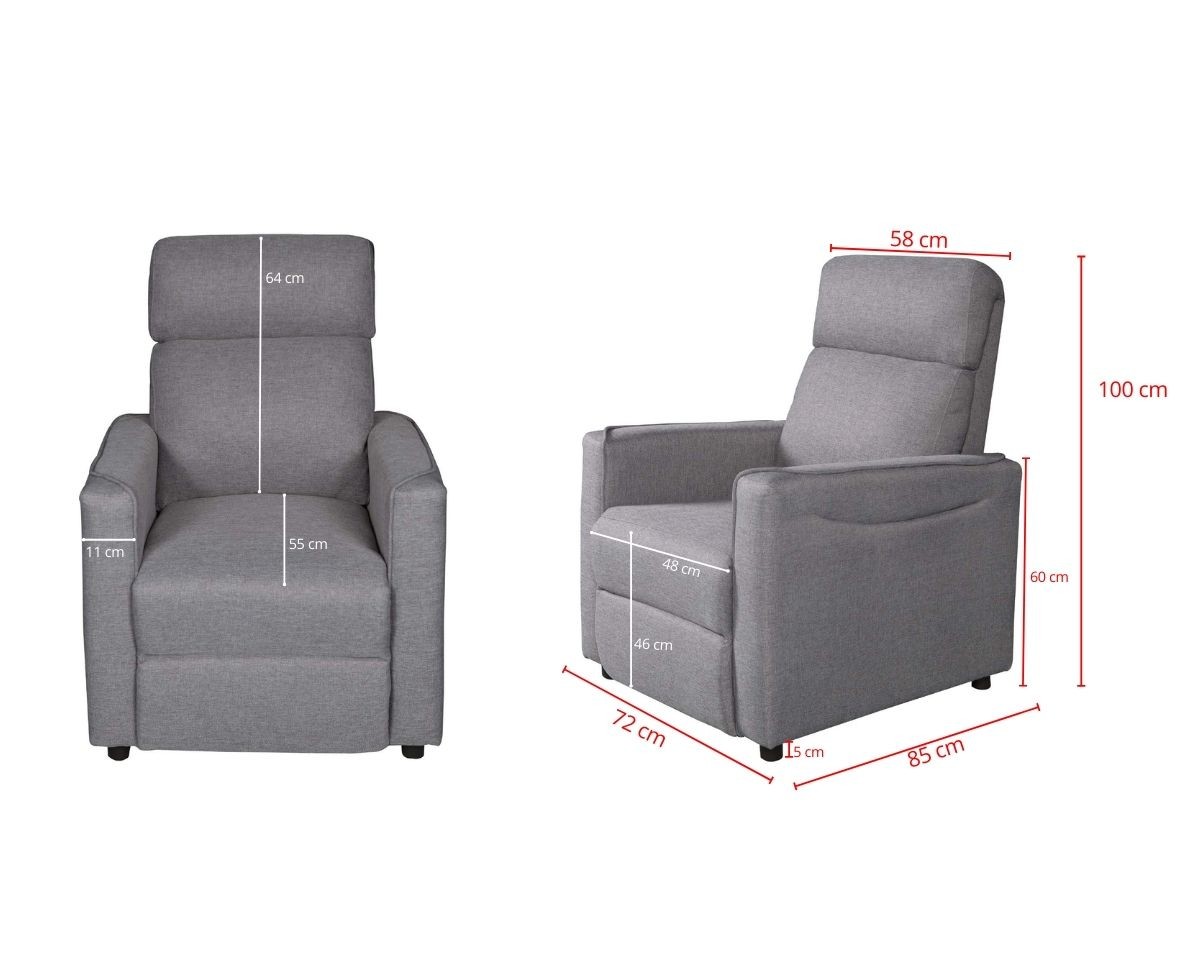 - Butaca: alto 100 cm, ancho 72 cm, fondo 85 cm.