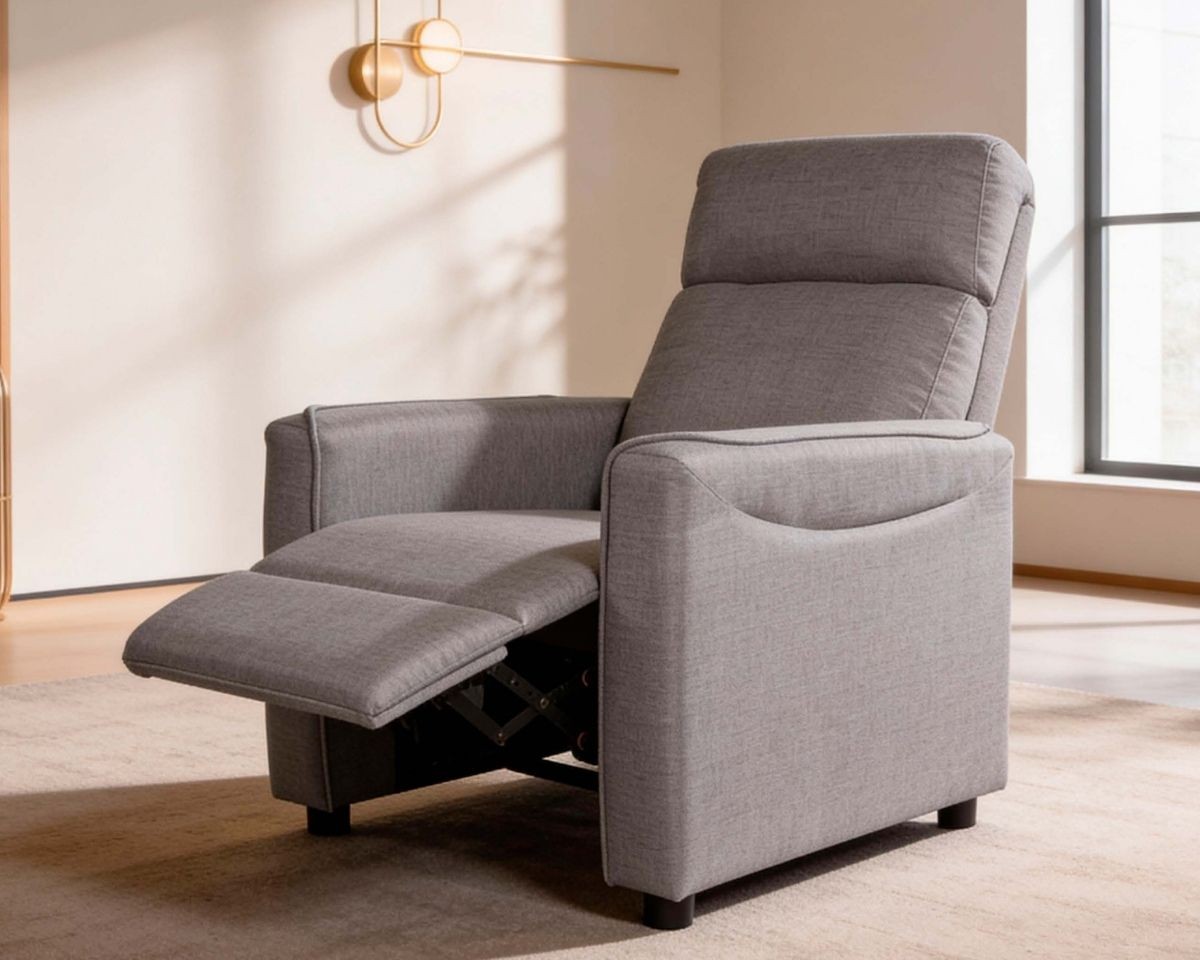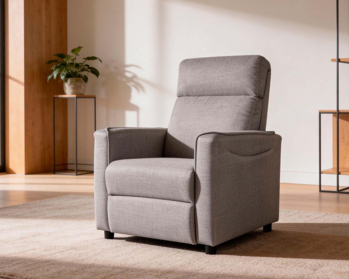 La butaca relax MEDEA es una pieza diseñada para ofrecer máximo confort con un estilo elegante y atemporal. Su sistema relax de empuje permite reclinar el respaldo y elevar el reposapiés de forma suave y natural, sin mecanismos eléctricos, ideal para quienes buscan simplicidad y durabilidad.
