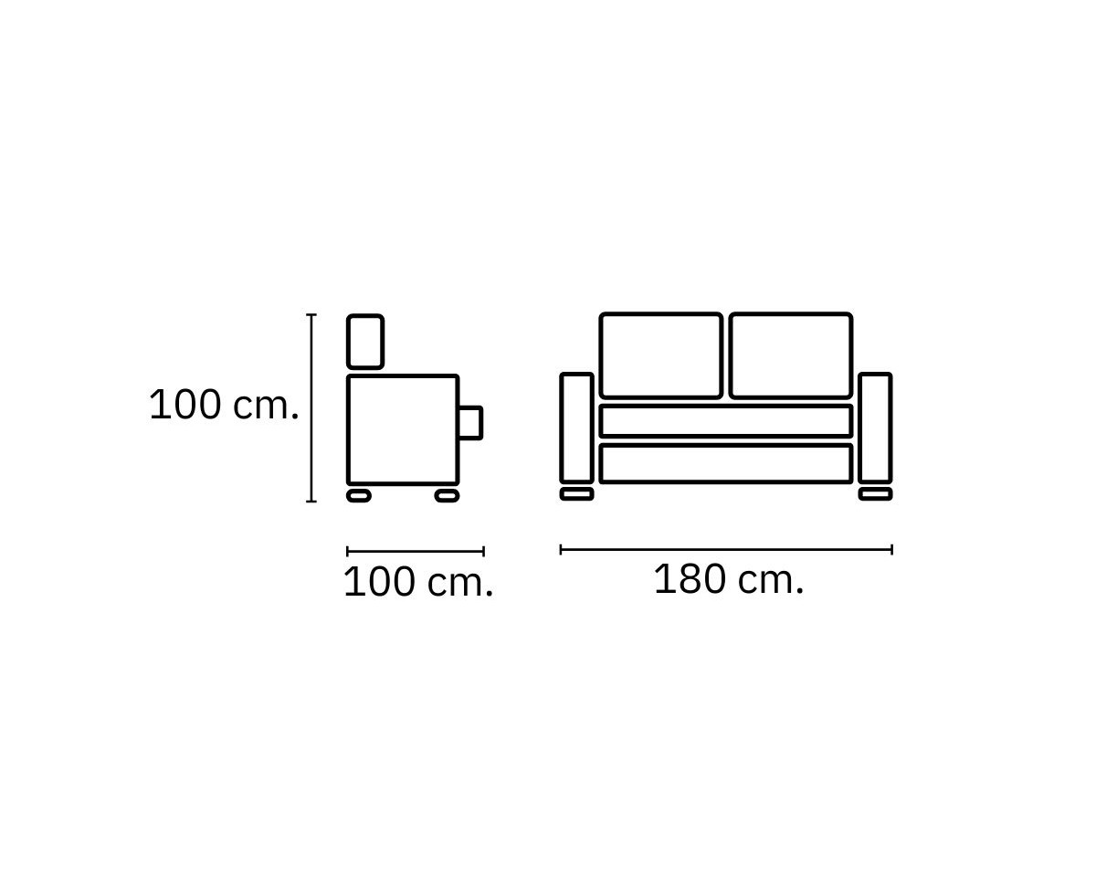 Sofá : ancho 180 cm, alto 100 cm, fondo 100 cm.